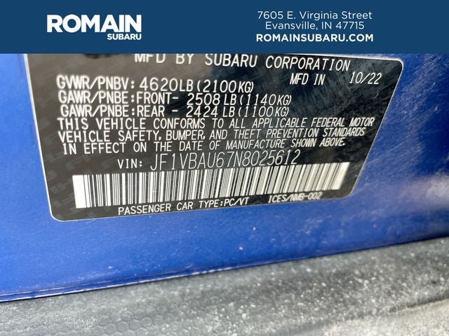 **We Deliver from our floor to your door! It's that easy! If you live within one hundred miles of our dealership, we will also deliver your car. See Dealer for delivery details. Buy Online-Get Trade Value Online-Email-Chat-Phone-Text and we will Deliver your Pre-owned vehicle to your door.** Standard Model, Navigation System, 11 Speakers, 4-Wheel Disc Brakes, ABS brakes, Air Conditioning, All-Weather Floor Liners, Alloy wheels, AM/FM radio: SiriusXM, Auto High-beam Headlights, Auto-Dimming Exterior Mirror w/Approach Light, Auto-Dimming Mirror w/Compass & Homelink (PIO), Auto-dimming Rear-View mirror, Automatic temperature control, Brake assist, Bumpers: body-color, Cargo Net, Cargo Tray, Driver door bin, Driver vanity mirror, Dual front impact airbags, Dual front side impact airbags, Electronic Stability Control, Emergency communication system: STARLINK Safety and Security (Subscription Required), Exterior Parking Camera Rear, Four wheel independent suspension, Front anti-roll bar, Front Bucket Seats, Front Center Armrest, Front dual zone A/C, Front fog lights, Front reading lights, Fully automatic headlights, harman/kardon® Speakers, Heated door mirrors, Heated front seats, Illuminated entry, Knee airbag, Leather steering wheel, LED Upgrade - Map & Dome Lights, Low tire pressure warning, Occupant sensing airbag, Outside temperature display, Overhead airbag, Overhead console, Panic alarm, Passenger door bin, Passenger vanity mirror, Performance Design Recaro Heated Frt Bucket Seats, Power door mirrors, Power driver seat, Power moonroof, Power steering, Power windows, Radio data system, Radio: Subaru STARLINK 11.6 Multimedia Plus Sys, Rear anti-roll bar, Rear seat center armrest, Rear Seatback Protector, Rear window defroster, Remote keyless entry, Security system, Speed control, Speed-sensing steering, Split folding rear seat, Spoiler, Sport steering wheel, STARLINK/Apple CarPlay/Android Auto, Steering wheel mounted audio controls, Tachometer, Telescoping steering wheel, Tilt steering wheel, Traction control, Trip computer, Turn signal indicator mirrors, Ultrasuede Upholstery w/Red Stitching, Variably intermittent wipers, and Wheels: 18 x 8.5 Matte Gray Finish Alum Alloy.